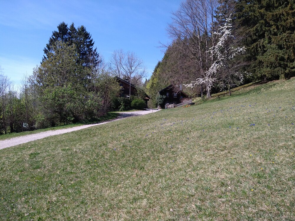 Von Unterammergau über den schönen Wiesmahdweg zum Hebammsberg. Im Frühling viele Enziane, Primeln und mehr.