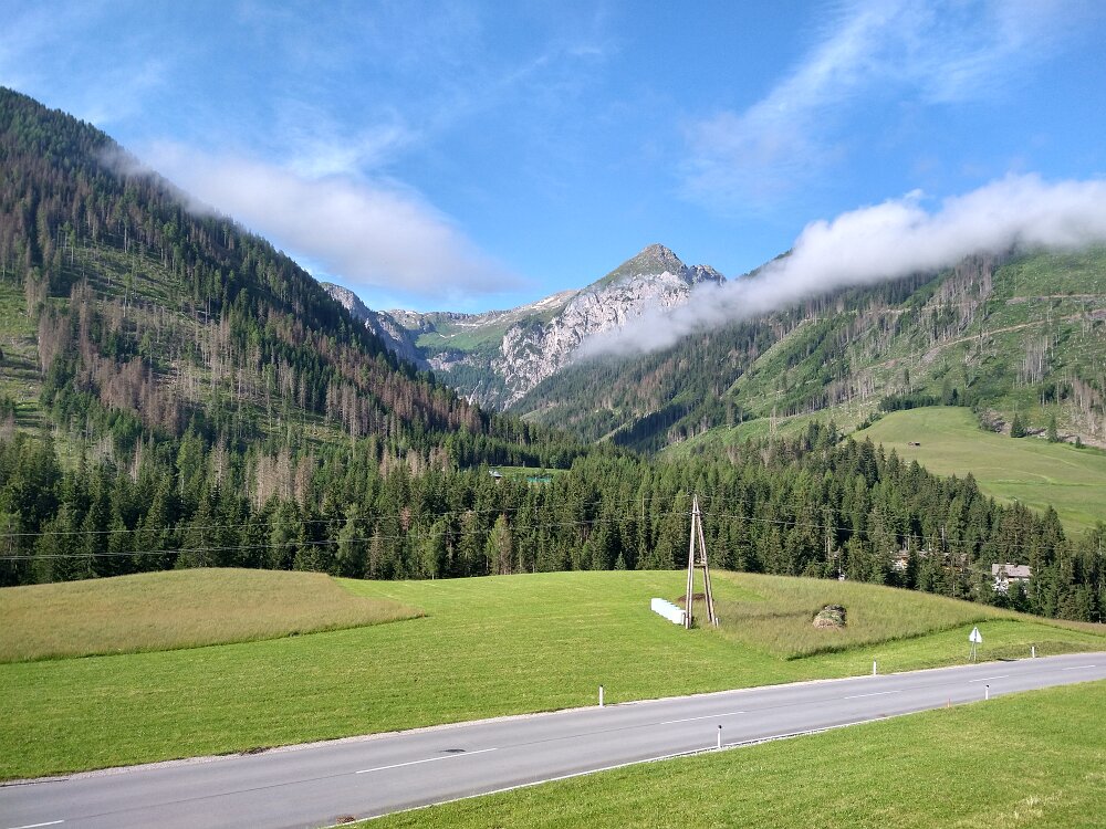 Heute mal Sonne und blauer Himmel am Morgen. Ausblick von unserem Quartier in Kartitsch-Erschbaum auf die Gatterspitze und den Obstanser Wasserfall. Da müssen…