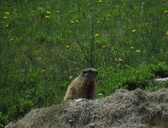 Der Abstieg zum Weitenstall bringt heute eine erfreulich nahe Begegnung mit den Murmeltieren und während die Hütte oben von einer Nebelwalze verschluckt wird, bietet der Blick in der Abendsonne am Weitenstall nach Norden wieder mal einen Traum, den es nur in den Bergen gibt.