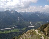 Blick zum Kienjoch, Frieder, Kuchelberggrat, Geierköpfe, ins Graswangtal mit dem Lindergries und ins Elmaugries