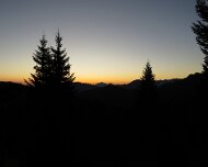 Der Mond in der Nacht davor Wir wollten den Sonnenaufgang von ganz oben sehen, aber dazu waren wir zu langsam. Am Grat über der Kuhalm angekommen. Am Horizont: Hinteres Sonnwendjoch links, Halserspitz und rechts der Wilde Kaiser Leider sind wir fast noch im Wald, als die Sonne über den Bergen aufgeht. Am Teufelstättkopf-Grat angelangt Zoom nach Osten Der Wilde Kaiser etwas deutlicher Am Grat kurz vorm Abzweig zum Kreuz Auf dem Stein Blick zum Sonnenberggrat und Estergebirge Der gute alte Enton:-) Aussicht nach Osten am Grat Teufelstättkopf und Laubeneck Scheinberg Hochblasse Hochplatte und Krähe Meine Heimat Oberammergau mit dem Kofel Schöne blaue Berge hinter den Bergen Kreuzspitze und Kuchelbergkopf Geierköpfe Krähe, Gabelschrofen, Gumpenkarspitze Hennenkopf 1769 m Ammergauer Alpen von Norden über Kuhalm - Hengstwald - Kleckelalpe - Wegsuche 11.08.23 Osttirol Kartitsch Dorfberg 2115 m 24.09.2023