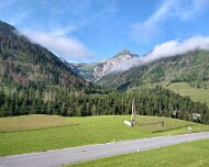 Heute mal Sonne und blauer Himmel am Morgen. Ausblick von unserem Quartier in Kartitsch-Erschbaum auf die Gatterspitze und den Obstanser Wasserfall. Da müssen…