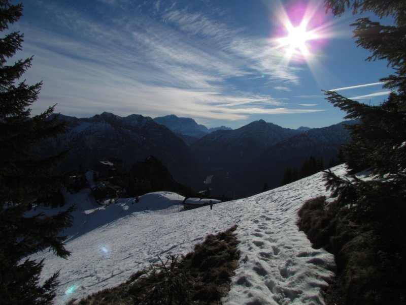 Der Hang ist jetzt sulzig und wir suchen nach einer harten Spur im Schatten