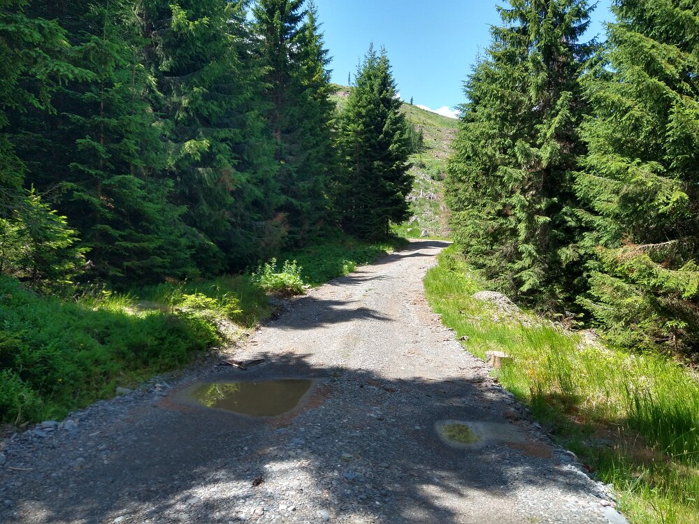 Es führt ein Fahrweg aus dem Winklertal bis oben zu der Hütte, mit dem E Bike oder Unimog könnte man bestimmt hochfahren, wenn nicht das letzte Gewitter die Straße ganz schön ausgewaschen hätte.