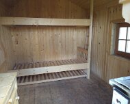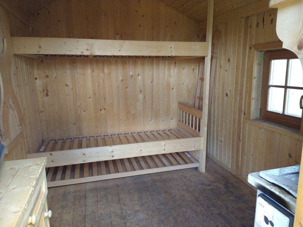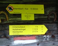 Den Aufstieg auf den Huilahnerkogel muss man auch erst mal suchen. Jetzt wäre es auch nicht mehr weit, auf die Reiterkarspitze, die bestimmt eine schöne Aussicht bietet, aber wir müssen ja auch noch das ganze Winklertal wieder zurücklaufen, um zum Auto zu kommen. Deshalb steigen wir vom Gipfel, der wie auch das Hinterkofelegg kein Kreuz und gar nichts hat, ab zum Kleinkartörl und sehen vor uns eine wunderschöne, ganz neue Hirtenhütte. Oberalm heißt sie und ist ein Traum aus ganz neuem Holz. Sie ist offen, im Brunnen schwimmen Bierflaschen, aber wir trauen uns nicht, da was zu nehmen:-) Stehlen tun wir nicht, auf den schönen Bergen schon erst recht!
