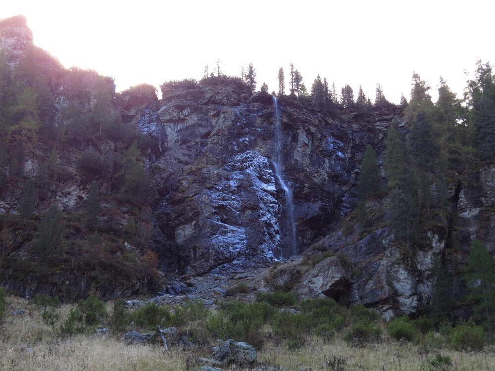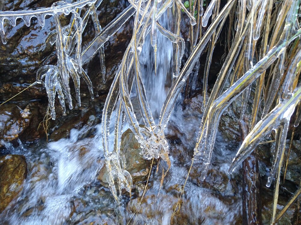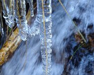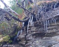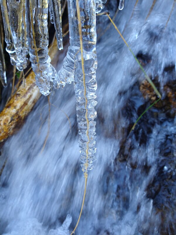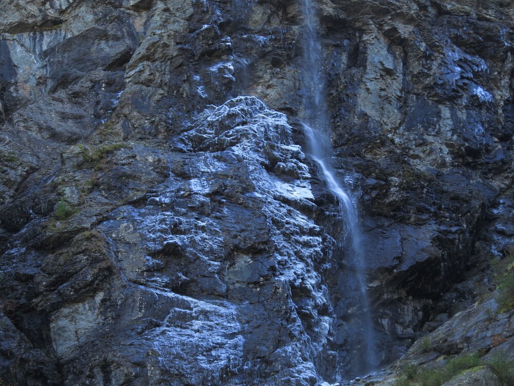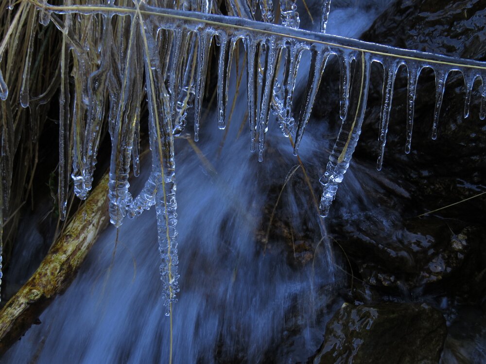 Im schattigen Leitertal liegt Reif und am Wasserfall gefriert das spritzende Wasser, was schöne Eisgebilde zaubert.