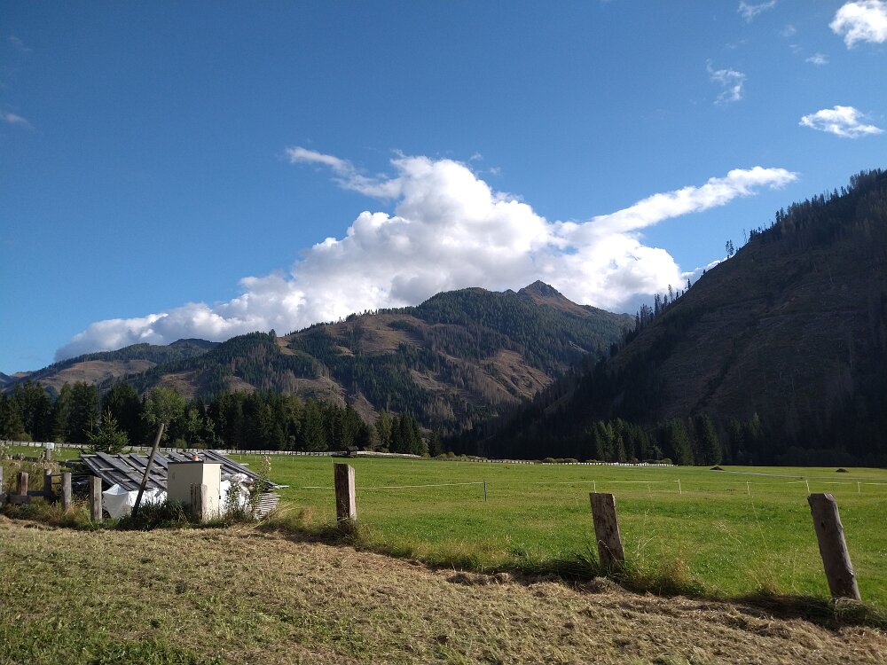 Blick von Kartitsch St. Oswald nach Norden zum Glinzzipf, den wir auf Rat eines sehr netten Einheimischen am nächsten Tag besuchen werden.