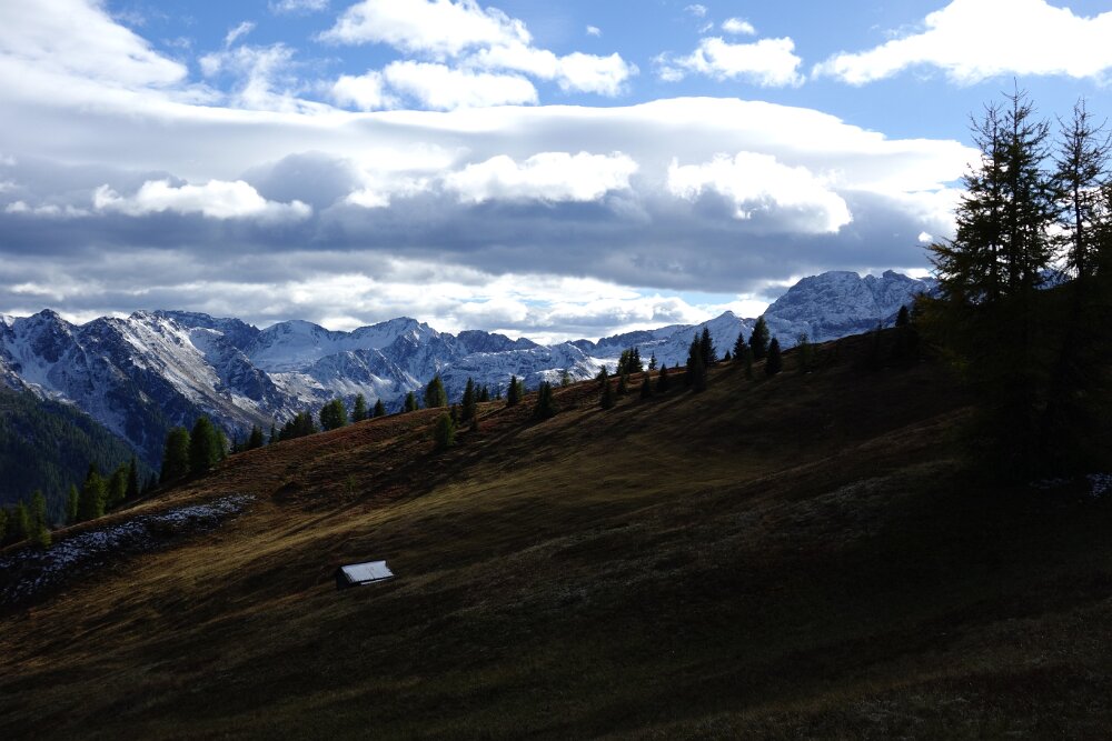 Lieblingsmotiv Leitertal und Reslerknollen im Aufstieg von Leiten zu den Dorfbergwiesen