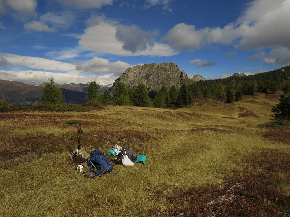 Sitzplatz in der Sonne am Grat mit Spitzenstein