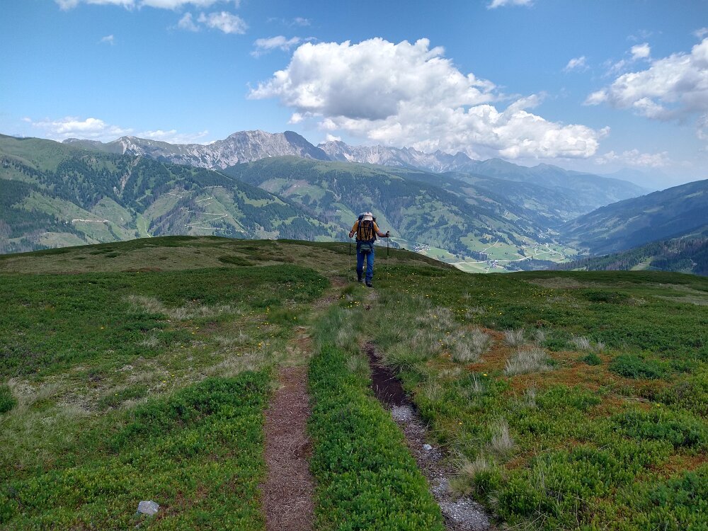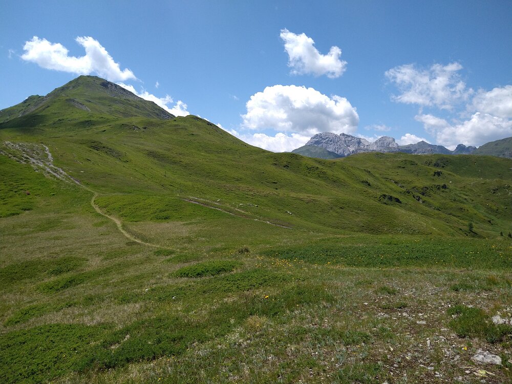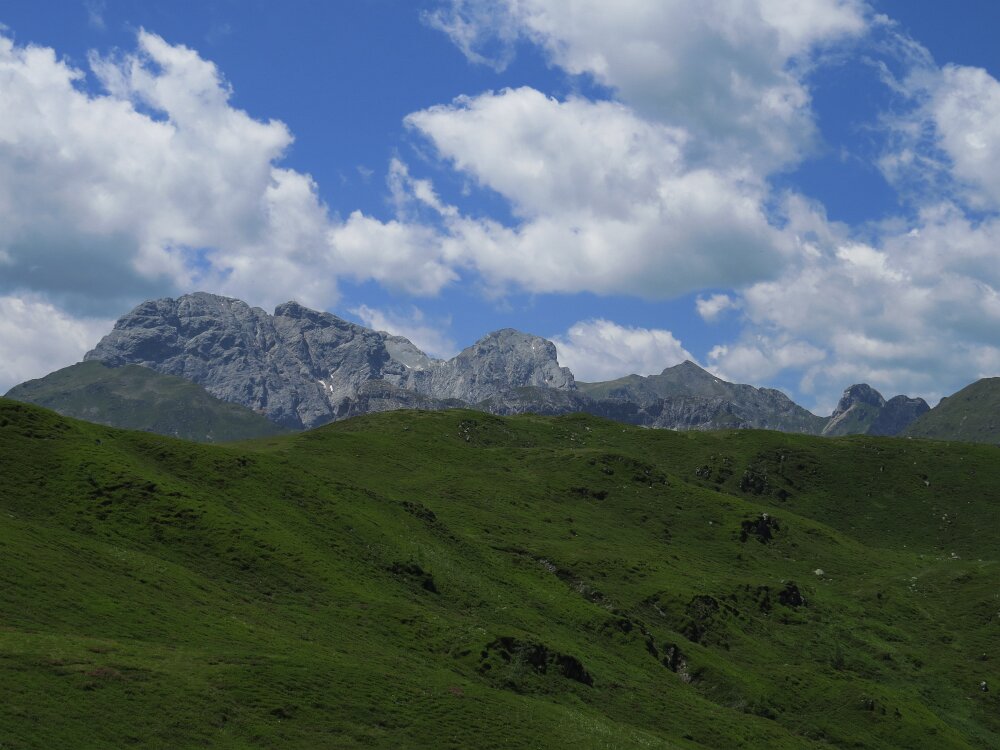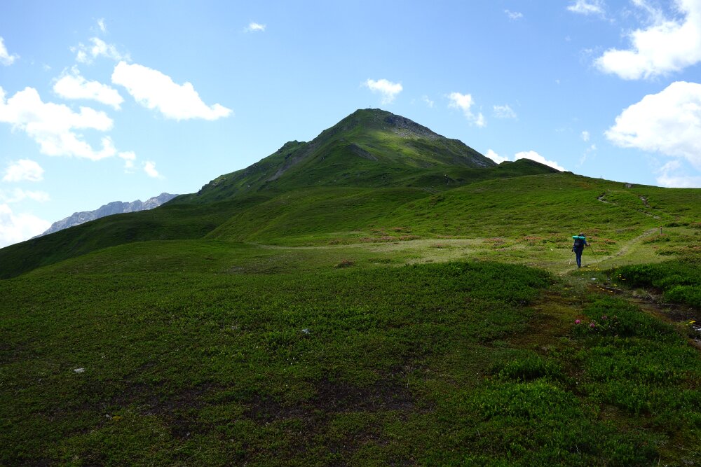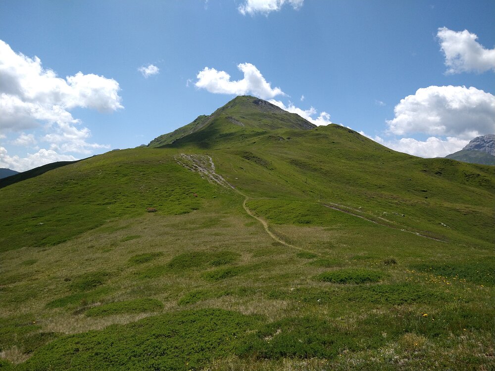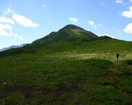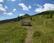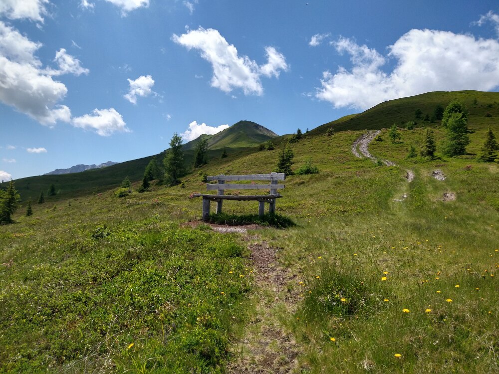 Von hier sieht man über dem lang gezogenen, grasigen Hang oben schon von weitem den Gipfel des Hohen Bösring. Im Winter ist das bestimmt eine schöne Skitour.