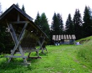 Den Aufstieg auf den Huilahnerkogel muss man auch erst mal suchen. Jetzt wäre es auch nicht mehr weit, auf die Reiterkarspitze, die bestimmt eine schöne Aussicht bietet, aber wir müssen ja auch noch das ganze Winklertal wieder zurücklaufen, um zum Auto zu kommen. Deshalb steigen wir vom Gipfel, der wie auch das Hinterkofelegg kein Kreuz und gar nichts hat, ab zum Kleinkartörl und sehen vor uns eine wunderschöne, ganz neue Hirtenhütte. Oberalm heißt sie und ist ein Traum aus ganz neuem Holz. Sie ist offen, im Brunnen schwimmen Bierflaschen, aber wir trauen uns nicht, da was zu nehmen:-) Stehlen tun wir nicht, auf den schönen Bergen schon erst recht!