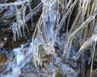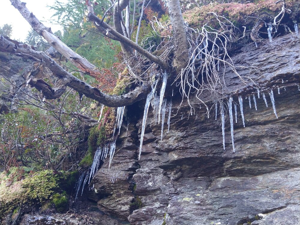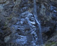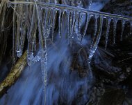 Im schattigen Leitertal liegt Reif und am Wasserfall gefriert das spritzende Wasser, was schöne Eisgebilde zaubert.