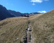 Die schönen Orchideen sind verblüht, nur ganz wenige blühende Bergschnittlauchpflanzen findet man noch. Oben an den zwei Hütten in der Sonne ist es angenehm, aber auf dem Reslerknollen ist es richtig kalt.